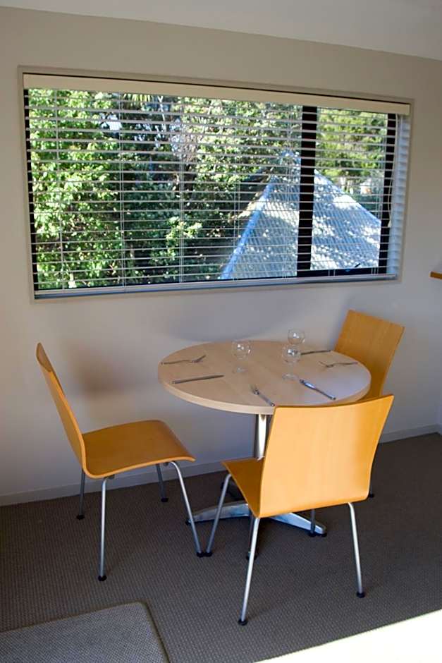 The waterfront Family unit has a queen bed in the lounge and a separated bedroom with 2 single beds or a queen bed (subject to availability) It also includes a LCD TV, DVD player, kitchenette and a lounge area. The upstairs rooms have a private balcony. The downstairs rooms open out on to a patio and a grass area.